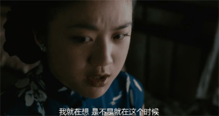 影院里见到邝裕民,王佳芝用颤抖不安的表情和语调问他: