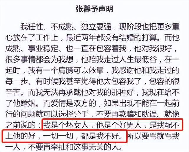 交往一年,两人分手了,张馨予感叹:" 他是个好男人,我配不上。"