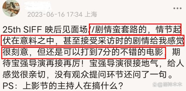 有人直接感慨难得有电影反馈看上去像是活人写的,买票的观众真的看够了 " 演技炸裂 "、" 鼓掌三次 "、" 史上最佳 " 一类的评价了。