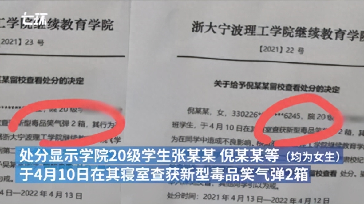 还是2025年4月,浙大宁波理工学院继续教育学院几名学生在宿舍存放2箱笑气,被处分。