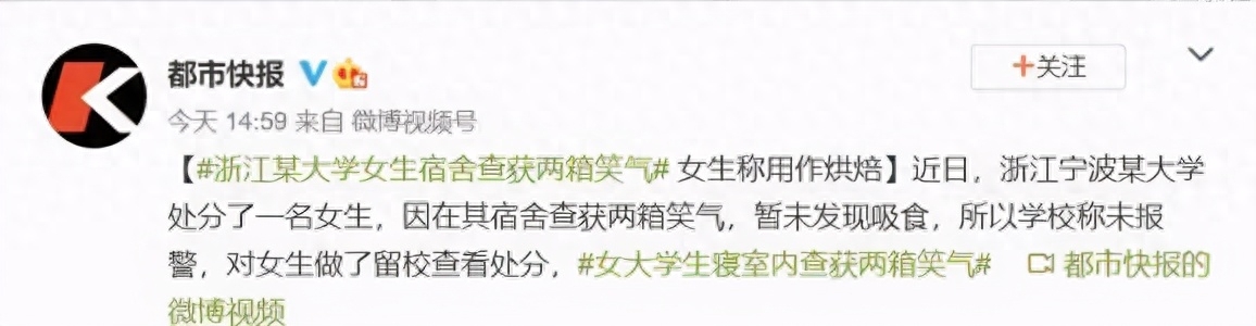 根据@澎湃新闻报道,校内人士称发现笑气时未开封,因未抓到吸食现场所以没报警,学生表示笑气是用来烘焙的。