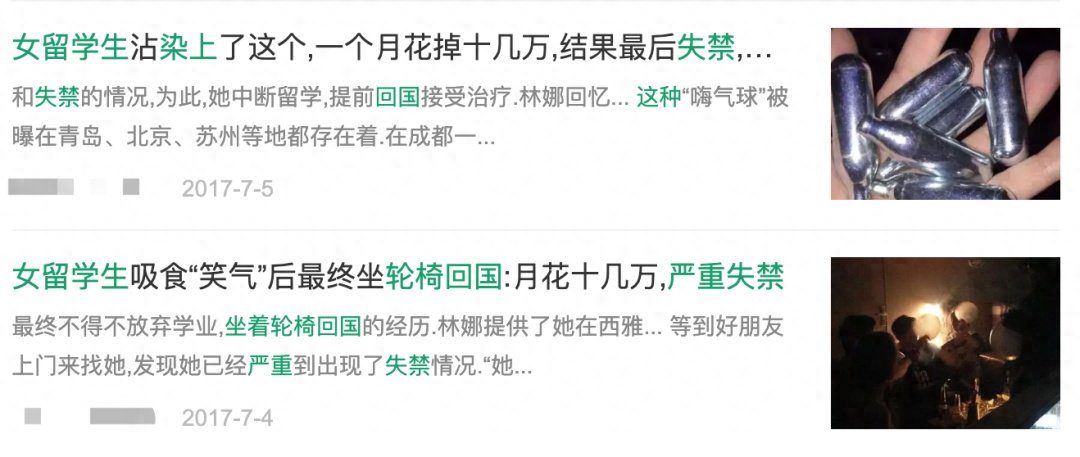 目前看来,4年前「女留学生吸食笑气失禁瘫痪后坐轮椅回国」的新闻而已经无法起到警示作用,新一代年轻人为了寻求刺激而吸食笑气的案例比比皆是。