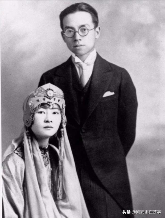 民国名媛陆小曼和徐志摩的结婚照,1926年10月,北京北海公园,徐志摩和陆小曼的婚礼上演尴尬一幕。徐志摩的老师梁启超是证婚人,希望二人痛彻前非,但愿这是他们最后一次婚姻。“新人及满堂宾客无一不失色,此恐是中外古今所未闻之婚礼。”婚后他们移居上海,陆小曼一个月500大洋的花费让徐志摩疲于应付。来往于上海和北京之间,最后飞机失事化为一团烟火。陆小曼以后没有再结婚,却和翁瑞午同居了三十年。