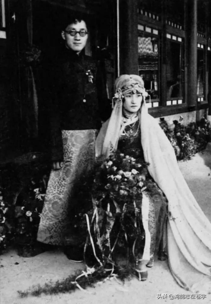 西方打扮的婉容和溥仪,看起来也很般配。穿旗袍的婉容温润如玉,不愧是王府出身,一身西装打扮的溥仪颇有书生气。二人曾在紫禁城举行婚姻大典,当时的大清已经灭亡十多年了。新婚之夜二人却各处一室,溥仪在养心殿睡了一夜。婉容在天津的时候很时髦,生活的却很压抑。溥仪的淑妃忍无可忍与溥仪离婚,婉容也跟着遭了殃。贪慕皇后虚名的婉容与溥仪侍卫偷情,据资料记载,她的孩子出生没多久,就被溥仪弄死了。