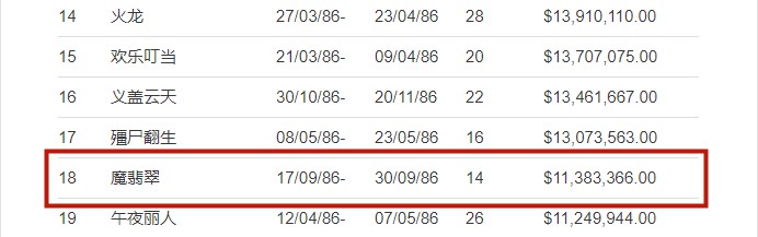 1986年,由刘德华挑大梁的《魔翡翠》一经播出,就拿下了1100万的票房。
