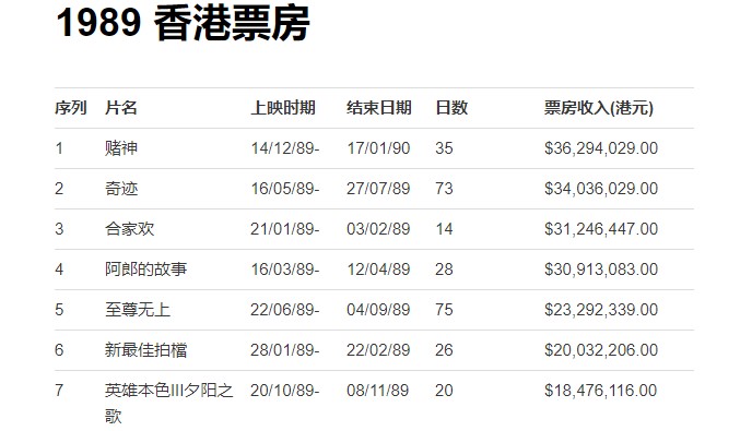 这部电影在当年的票房排行榜的第18名,与排行第一的《英雄本色》差了近2000万的票房。