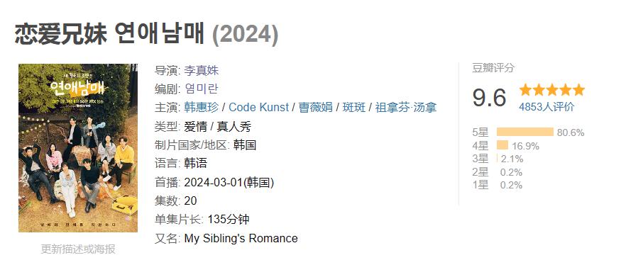 《恋爱兄妹》,豆瓣开分 9.5的神级恋综。