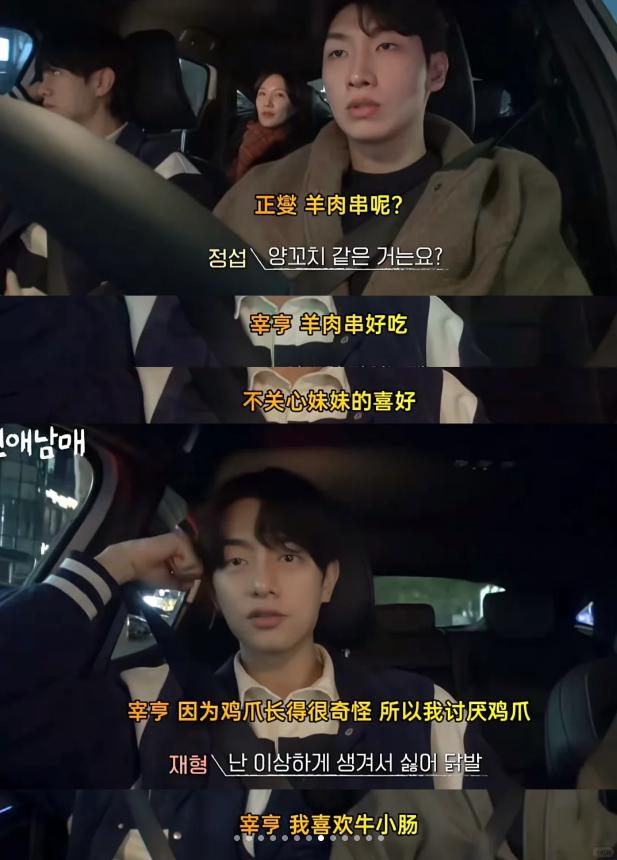 妹妹坐在副驾,和其他男嘉宾聊爱吃什么,他疯狂插嘴试图加入对话已读乱回。
