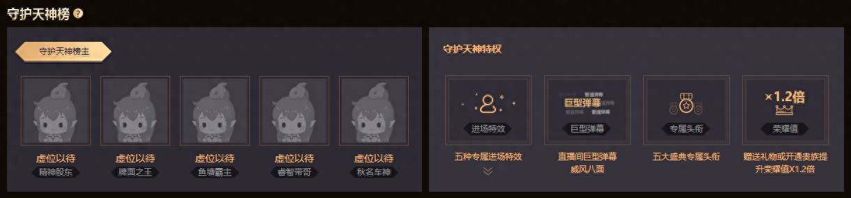 1.活动期间每小时贡献荣耀值前5名的用户,成为守护天神;