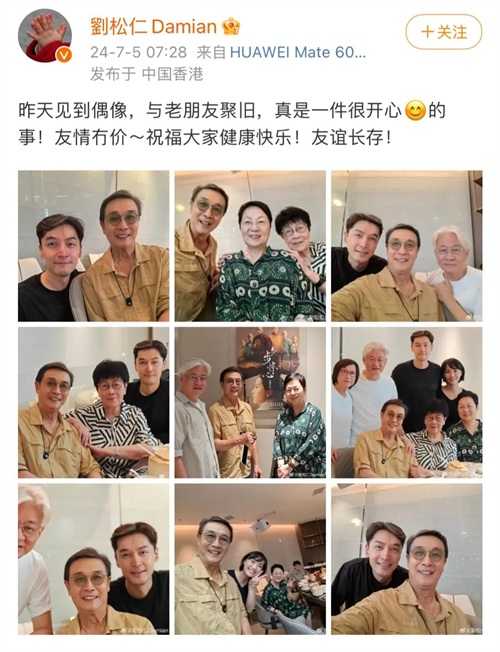香港演员刘松仁晒出和胡歌等人一起聚会合照。