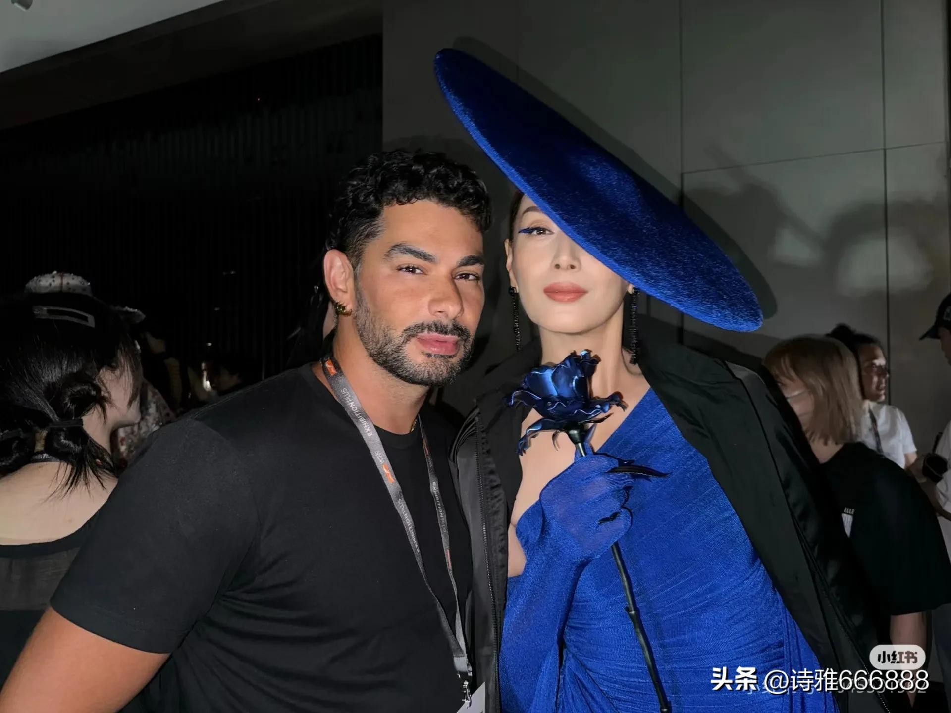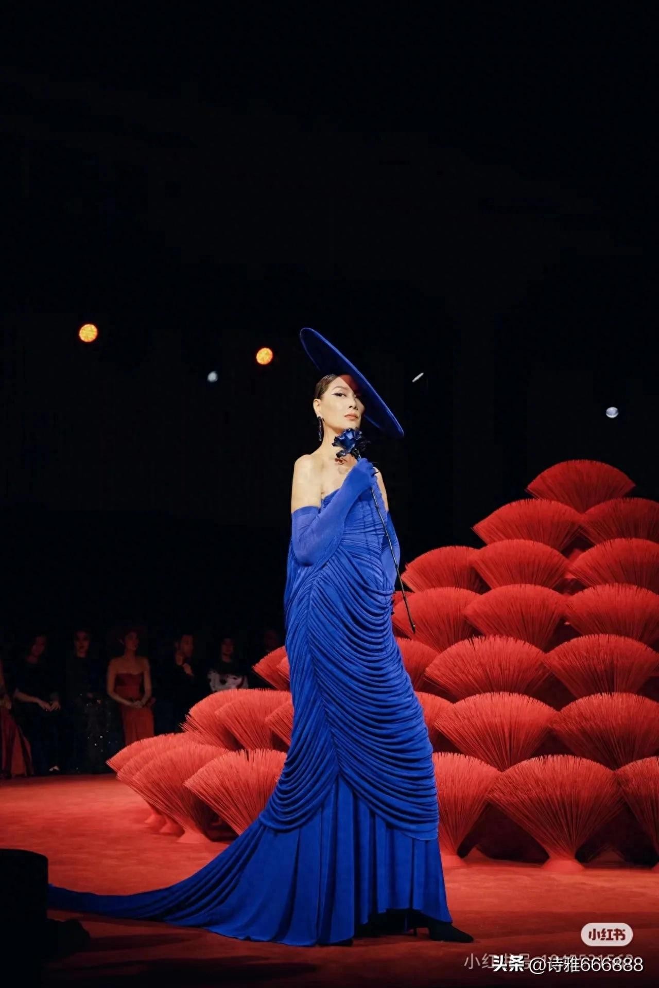 任达华老婆琦琦参加时装秀,一袭蓝色穿搭造型好美好惊艳!