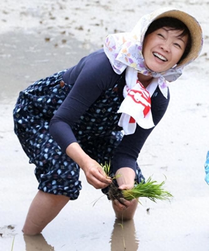 说到种田,这是她在2015年学会的新技能,当时她邀请了美国驻日本大使卡罗琳·肯尼迪一起插秧,那副传统的农村妇女的打扮确实有模有样。