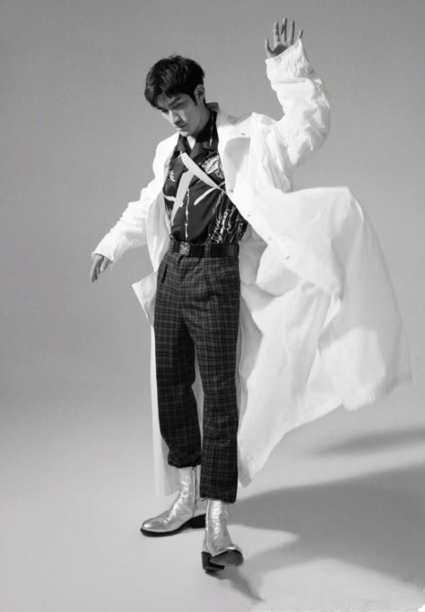 而李治廷则是同样高冷范十足,看他这组写真里的个人写真,穿的是高领的运动上衣,然后又搭配上高腰的阔腿休闲裤,然后还用腰带给系起来,再搭配上白色运动鞋,帅气十足呢。