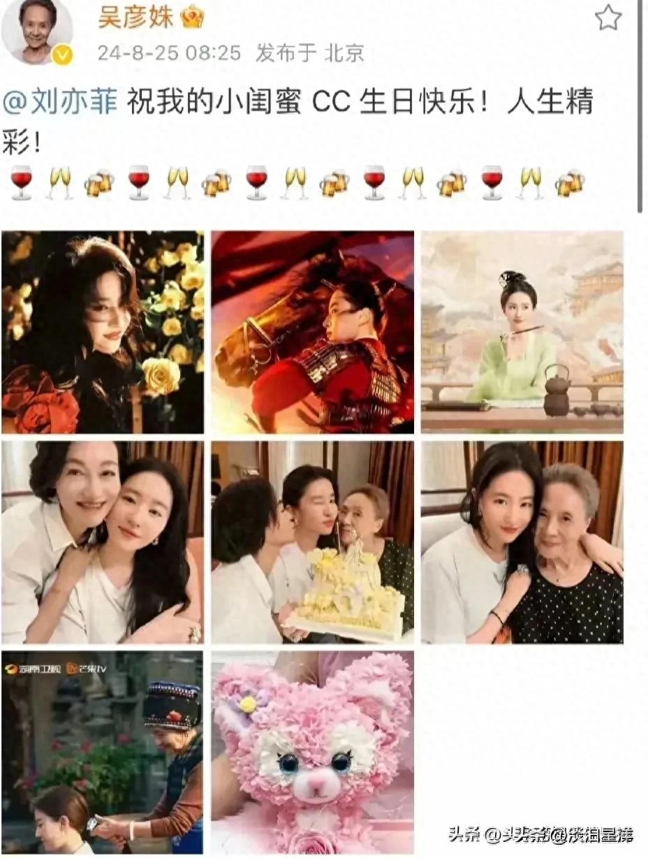 8月25日,当红女星刘亦菲迎来了她的37岁生日,这一天不仅被粉丝们热烈庆祝,更收获了来自圈内好友们的温馨祝福。其中,影后惠英红和吴彦姝这两位长辈这份心意让无数网友感动。