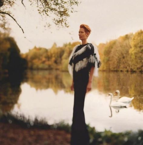 蒂尔达·斯文顿气质好与她腿长也有关系,作为女性,她有很多男性都望尘莫及的傲人身材比例,179的身高配上天鹅颈,让她看起来更高了。无论怎么拍,她似乎都可以美得像一幅油画。