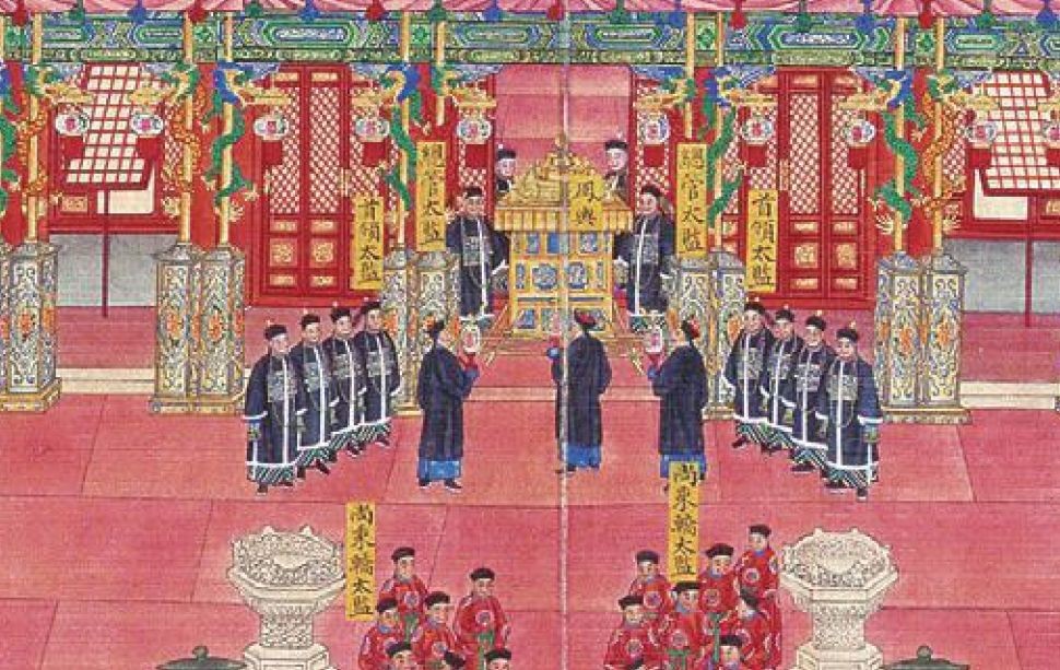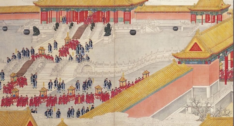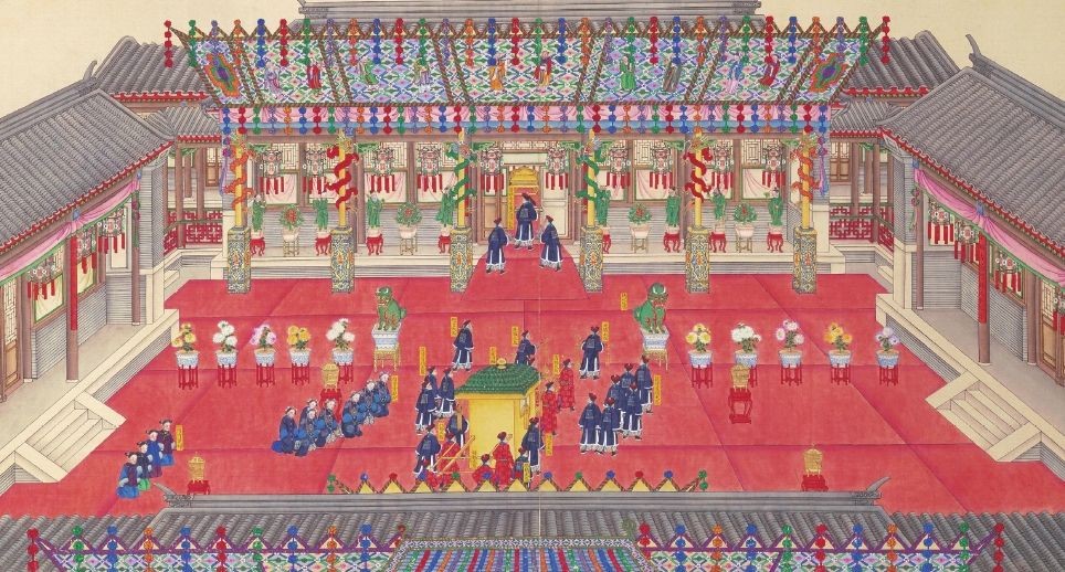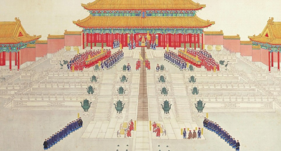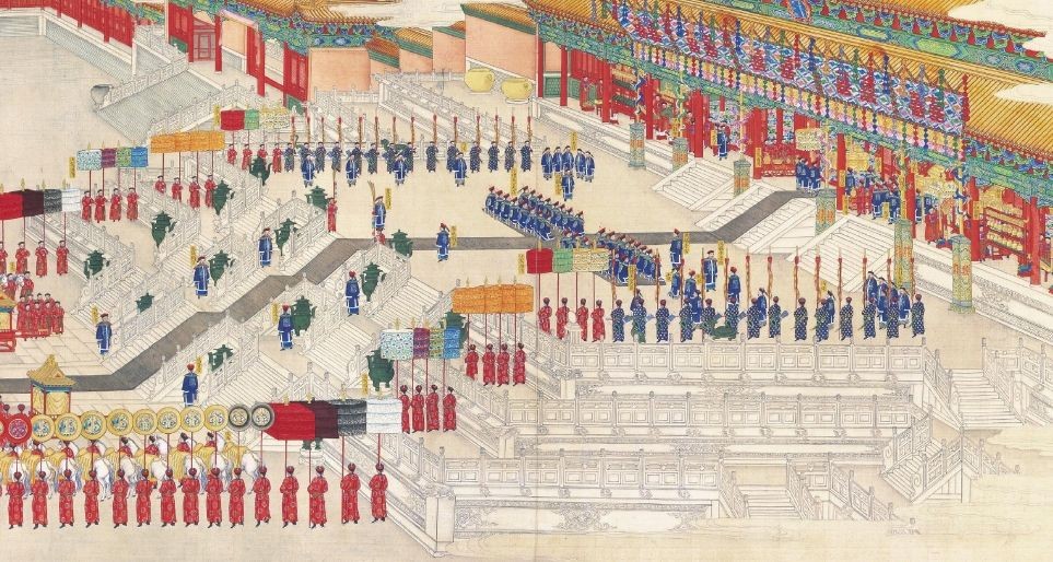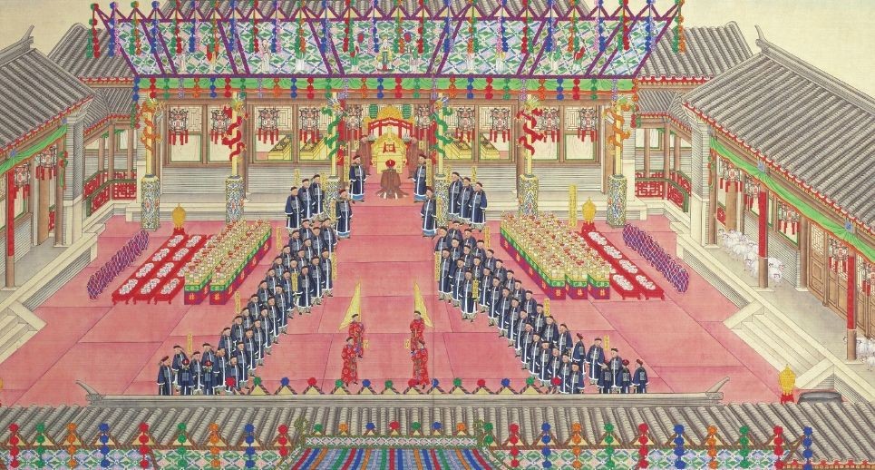 ○御太和殿。王以下文武大臣官员、蒙古王公、暨朝鲜使臣、行朝贺礼。礼成。颁诏天下。(光绪实录卷266)