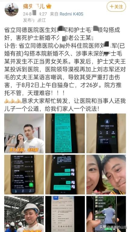浙江同德医院女护士出轨医生,丈夫受辱自杀身亡,遗书让人泪目