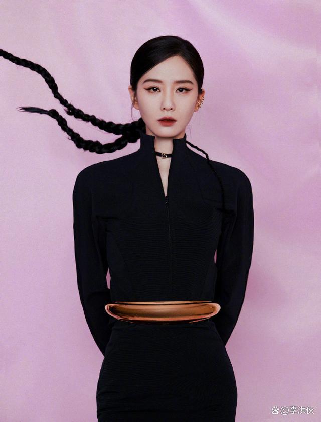 大幂幂也是一脸生人勿近的淡漠表情,仿佛幕后运筹帷幄的大佬,眼神凌厉又温柔。整体造型酷飒有型,像是居高临下的女王,气场十足!