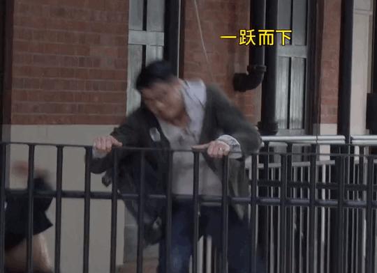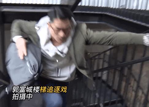 郭富城在楼梯上被拖拽十余次;高架攀爬,摔打。
