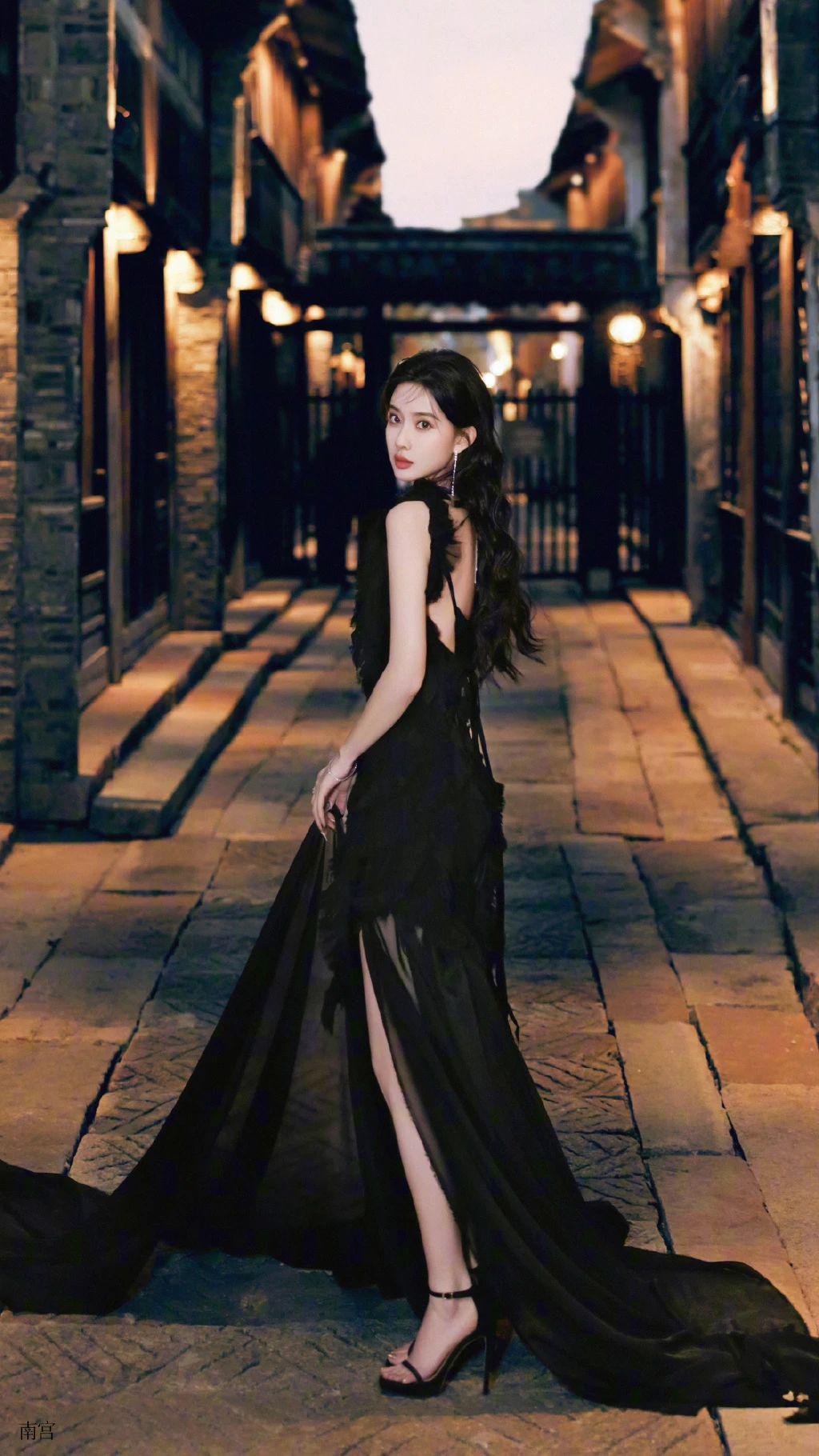 一袭黑裙清冷美艳,宛如高贵的黑天鹅。
