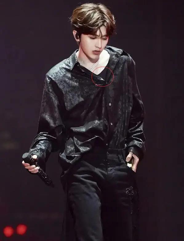 粉丝们看到这一场表演后瞬间炸了锅,要知道以往的蔡徐坤可以称得上是一位“打底狂魔”了,不管在什么时候,最“爱”的穿搭一定是里面有内搭,就像这张舞台照,黑色的衬衫仅仅可能会露一些锁骨,然而即使这样里面还是搭上了一件黑色T恤。