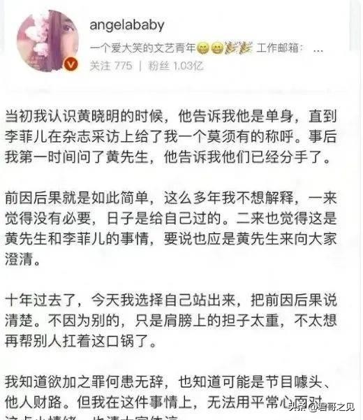 此外,娱乐圈中的绯闻和争议也是明星们难以避免的。在李菲儿和黄晓明的感情纠葛中,baby被指为小三,引发了一场热议。