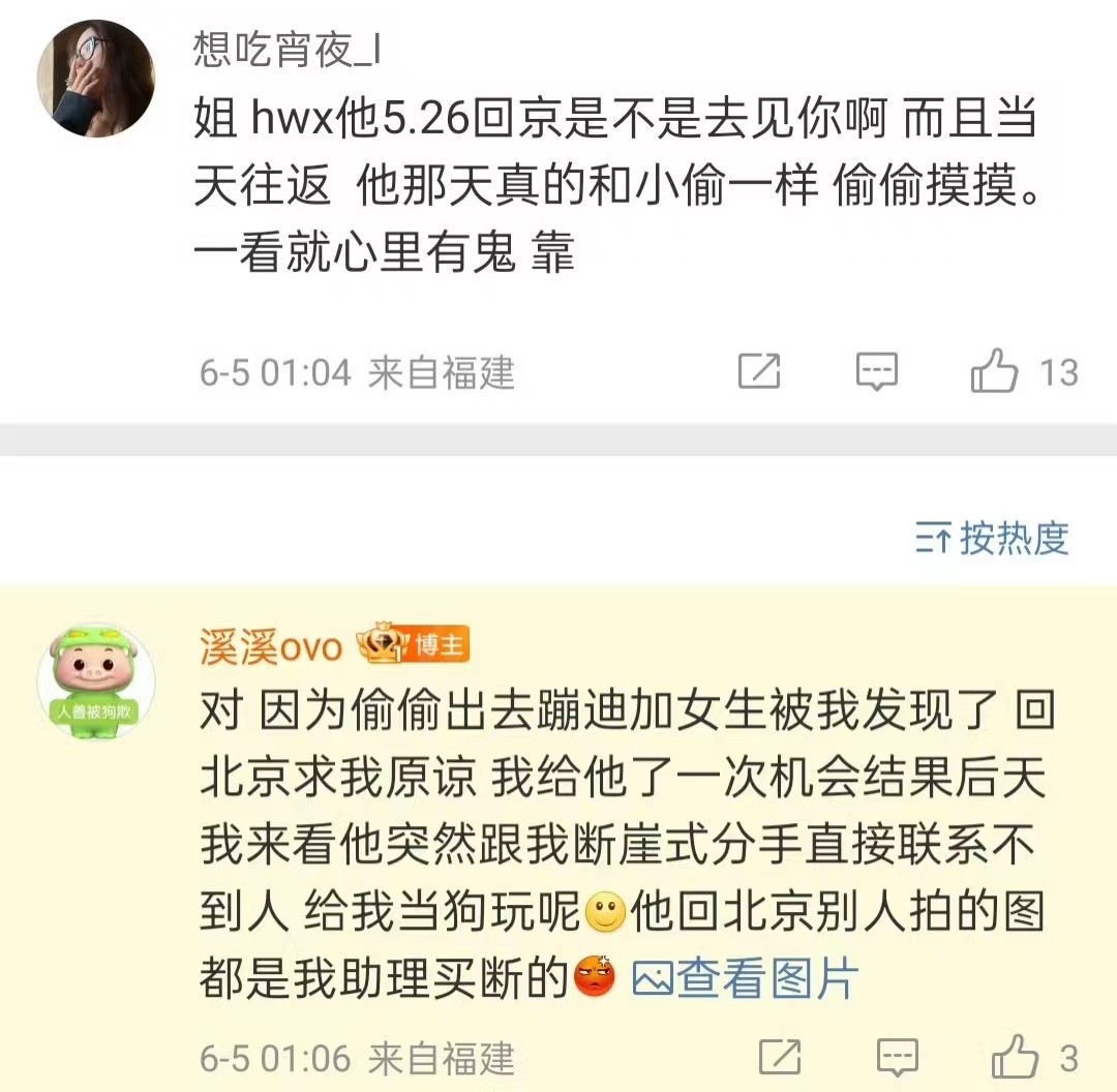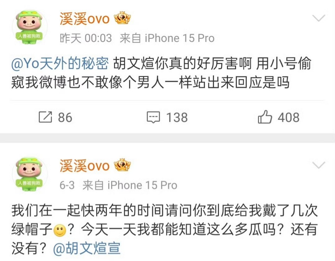 “溪溪ovo”是一个新账号,该账号从6月3日开始爆料有关胡文煊的丑闻。