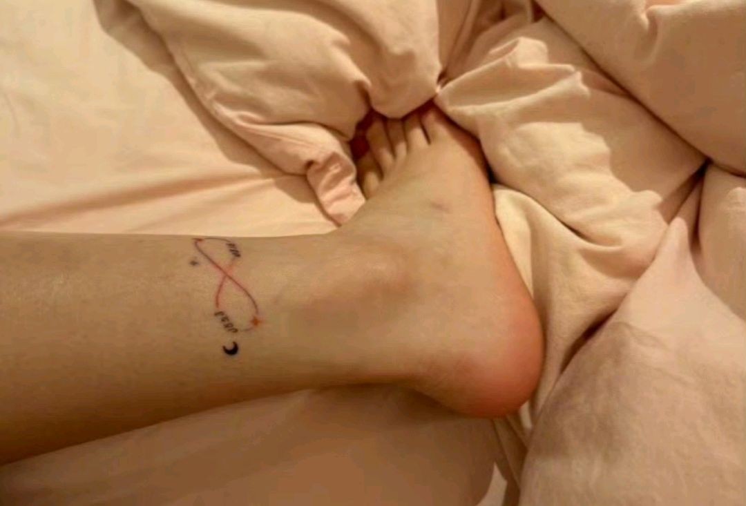 她晒出了和胡文煊的同款纹身,一个纹在后背,一个纹在脚踝。