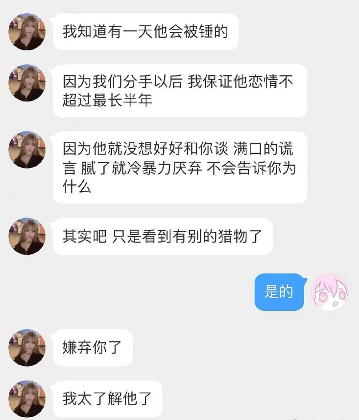 在等律师函的一天中小虎的黑料猛增,连前女友安然都出来锤他了。原来是最先爆料的那位女生找到了安然,安然说自己早就看清小虎这个人了,他根本就是满嘴谎言,不是真心对人的,而且安然还把一些爆料都发给了这位女生,跟她说随便锤,自己已经连朋友都不想和小虎做了。