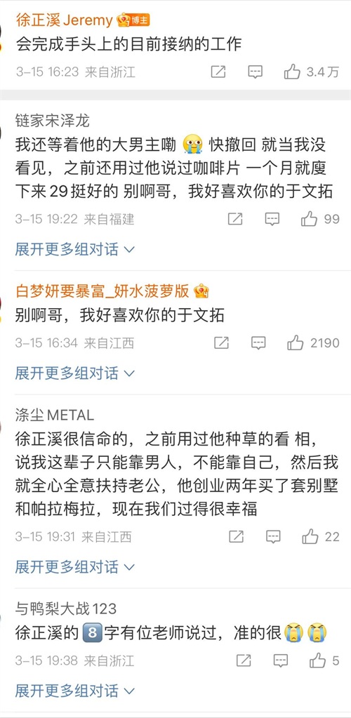 但是没有想到的是,隔天徐正溪正式的发布了退圈的声明。