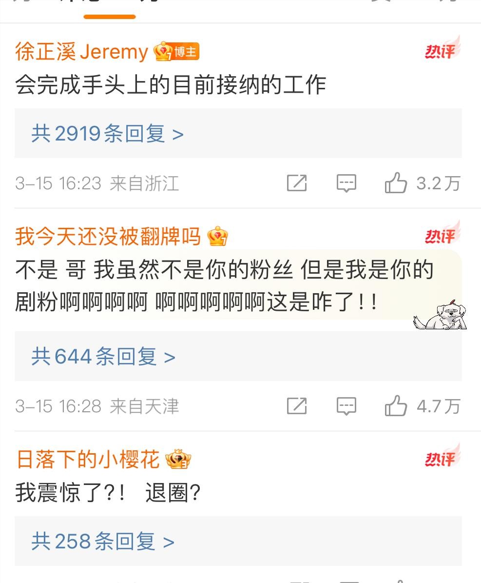 随后徐正溪在评论区回应道,的确是退圈,而且现在准备完成手头上目前接纳的工作。