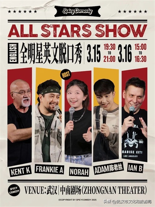 脱口秀常有,90分钟的纯英文脱口秀不常有,武汉的朋友,想不想来挑战一下?