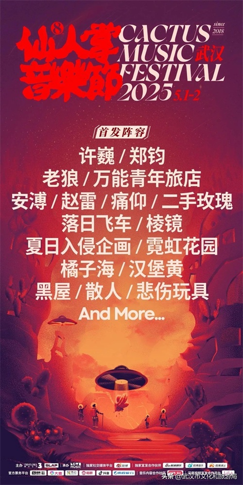 五一首次来汉的「仙人掌音乐节」已官宣首发阵容,许巍/郑钧/万能青年旅店/赵雷/二手玫瑰……摇滚青年原地开蹦!