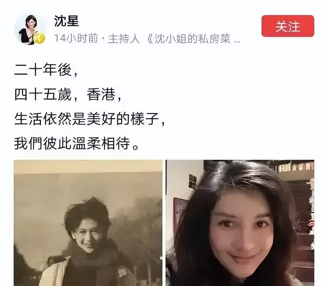 如今的沈星,已经46岁,时不时在微博上分享自己的生活动态。