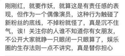 有些粉丝会气急败坏着前去留言,对爱豆特意通知一声说我要取关你了,你竟然和她在一起。