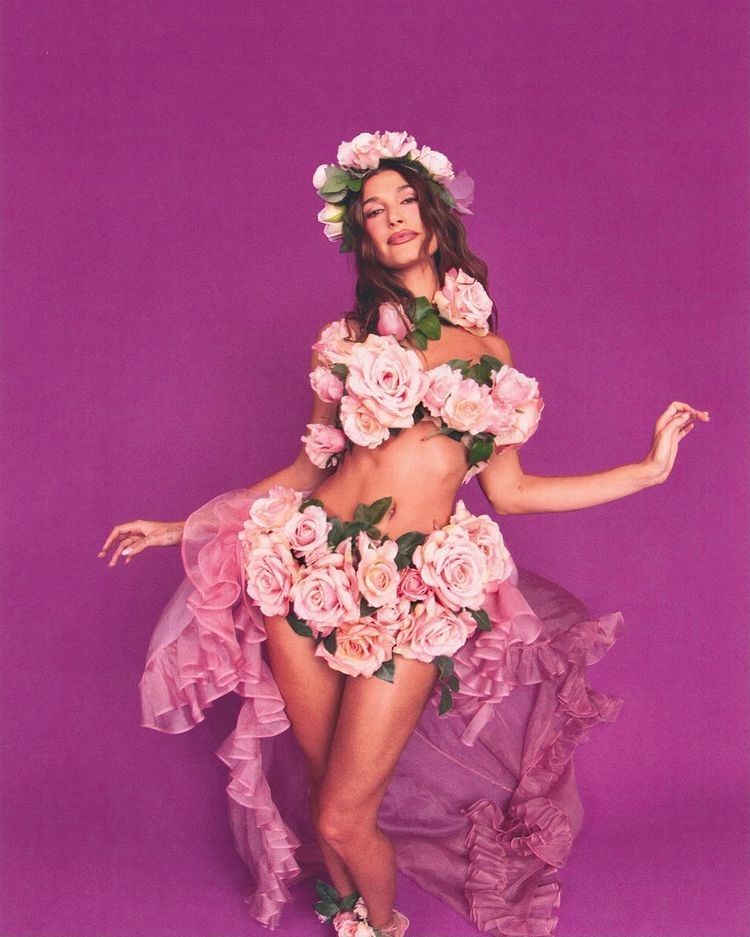 海莉·比伯已经够美,还加上花朵岂不是更仙?这次万圣节主题,她决定致敬「YSL haute couture 1999」,当时这套花礼服可是在巴黎时装周掀起一波讨论度,超级吸睛!