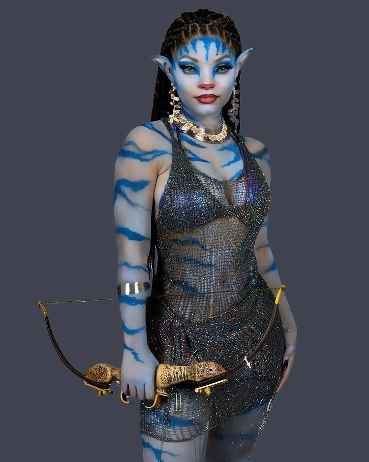 迪斯尼真人版《小美人鱼》的女主角哈雷·贝利(Halle Bailey)在万圣节并没有打扮成艾莉儿,而是扮成超美艳的《阿凡达》!全身蓝皮肤加上尖尖的精灵耳,还有闪亮亮的珠宝、礼服整个仙气爆棚,太漂亮啦~