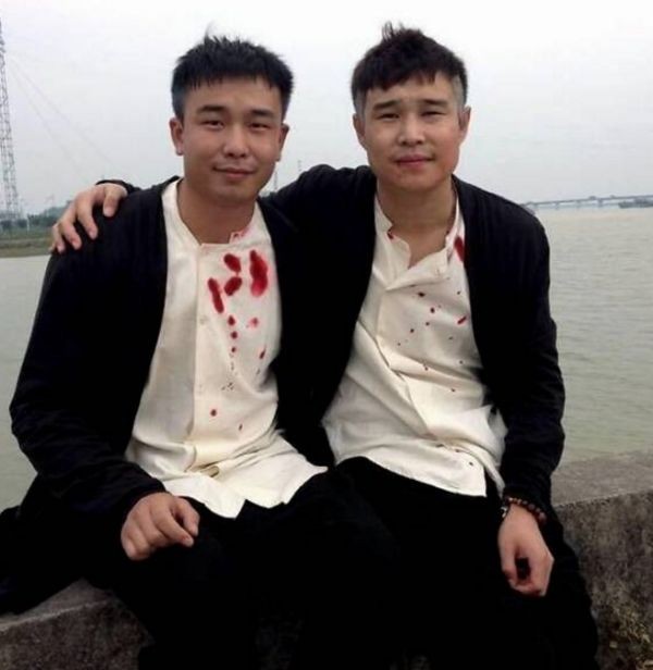 接下来就是陈小春与他的替身了。陈小春拍的动作影片也很多,要替身也是再正常不过的事情了。不过,这张不标注谁是陈小春本人了,谁能猜出来呢?他们是不是很像孪生兄弟?
