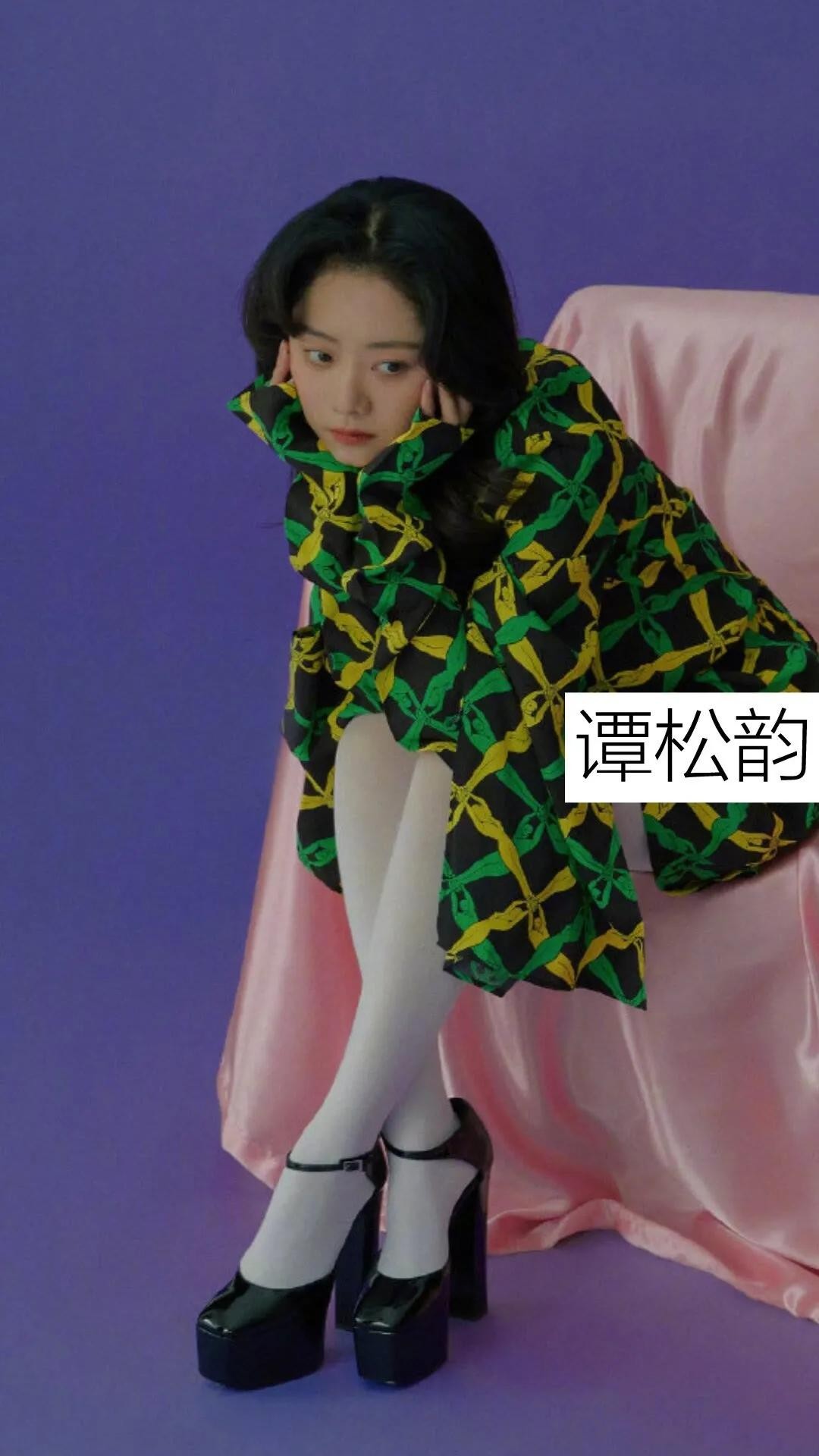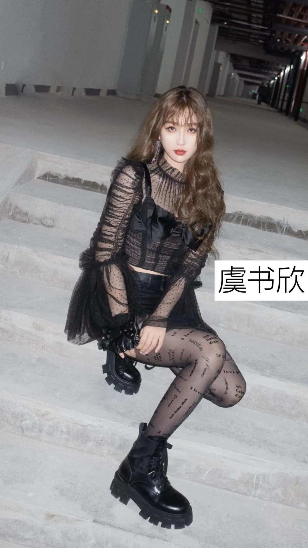 穿了一双黑色的丝袜,若隐若现露出小鸟腿,双腿修长又纤细。