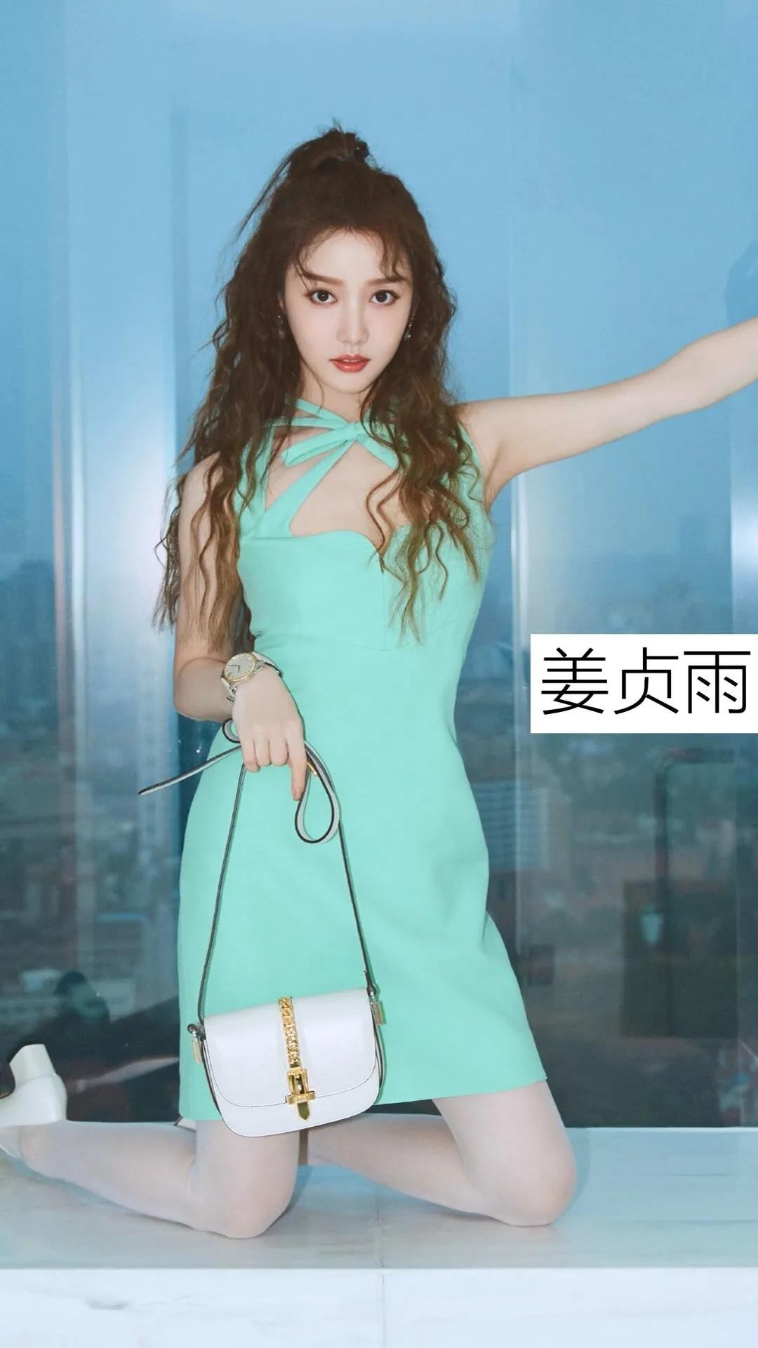 而且绿色的裙子更是能够衬托她完美的身材比例。