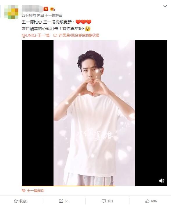 整个视频过程,都是严肃的表情和冷酷的动作。但是每次比心还是被撩到了。粉丝们的评论更甜,评论说他给我们表白了,他说我们好甜,死小孩太浪漫了。表白还那么酷,面无表情还那么帅。这位粉丝说的非常对,面无表情还是那么帅,还是被撩到。