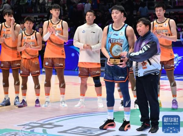 ↑南区明星队球员胡明轩(右三)获评最有价值球员。新华社记者 魏培全 摄