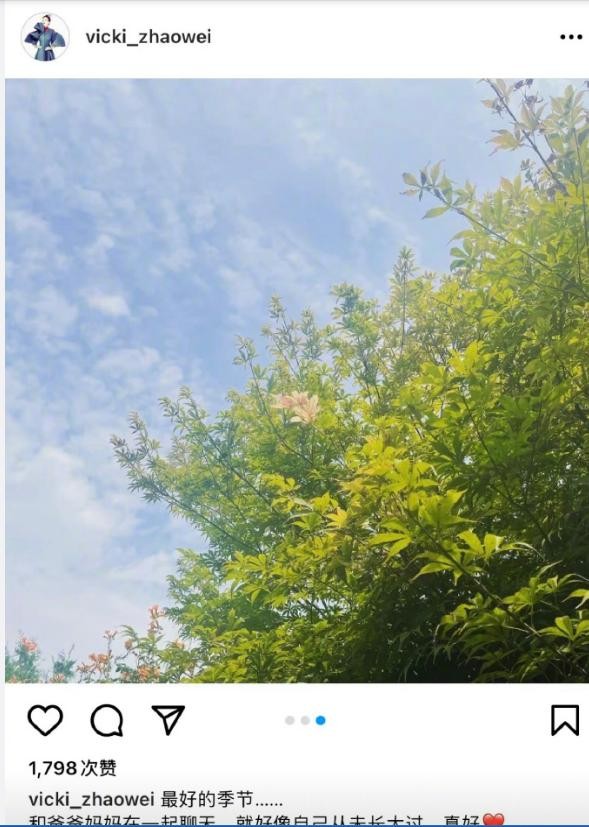 赵薇ins发文透露近况,现在正跟父母在一起,还叮嘱粉丝好好吃饭