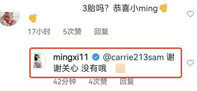 终于在十几个小时之后,奚梦瑶在评论区里做出了回应,她否认怀孕一说:谢谢关心,没有哦!