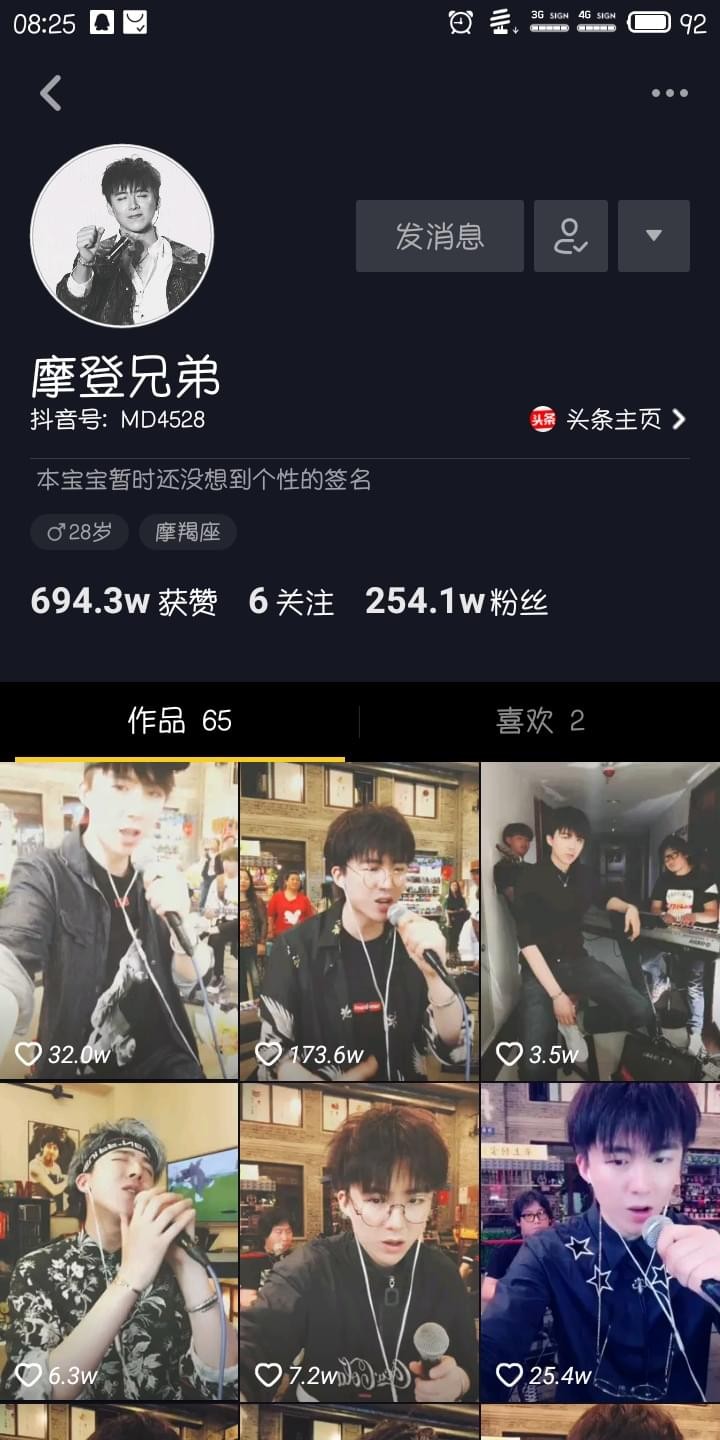 摩登兄弟是近期火起来的一名抖音大神,凭借着帅气的外形和一流的唱功吸引了几百万粉丝。