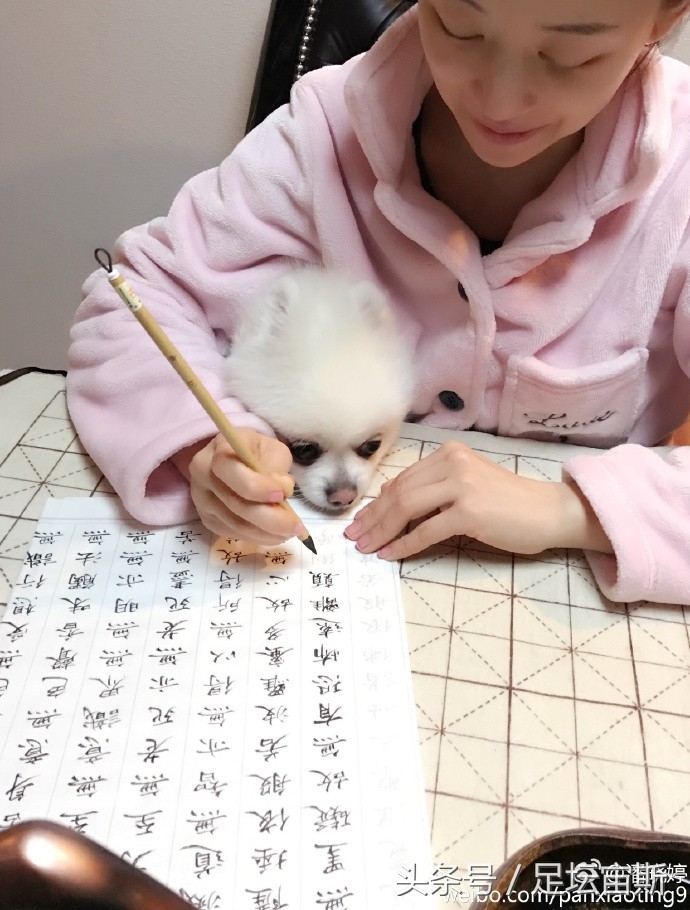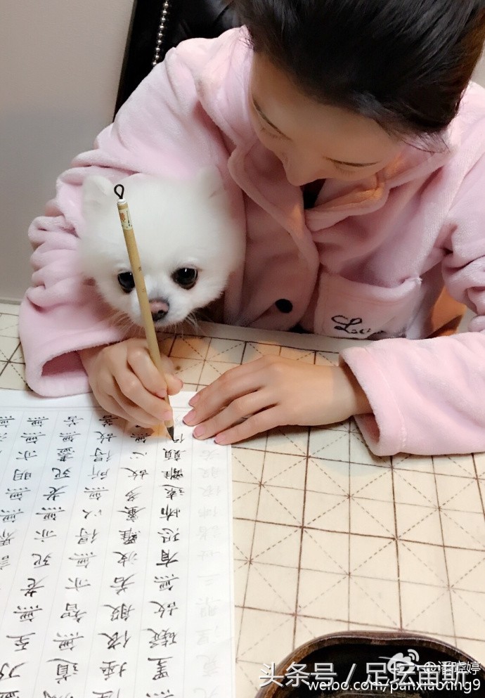潘晓婷在微博写道:好奇宝宝潘小乖跟大家说早上好。只见九球天后穿着粉红色睡衣,抱着萌萌的爱宠提笔认真地写字,那一刻,她不再是叱咤风云的九球天后,只是一个安静的文雅女子,端庄贤淑,知书达礼。