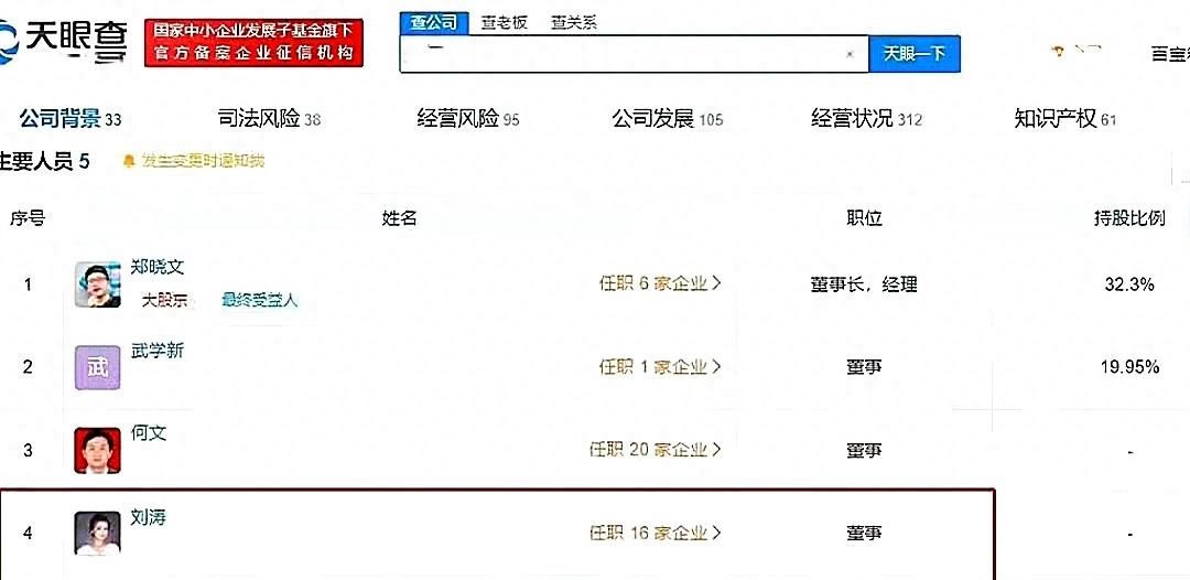 此外,刘涛也没有错过明星喜欢的“商业场所”。据了解,它与16家公司有联系。
