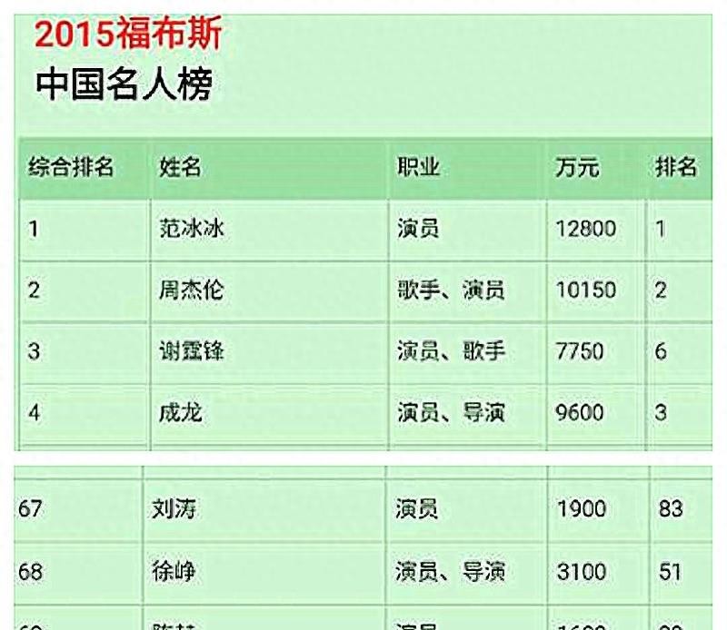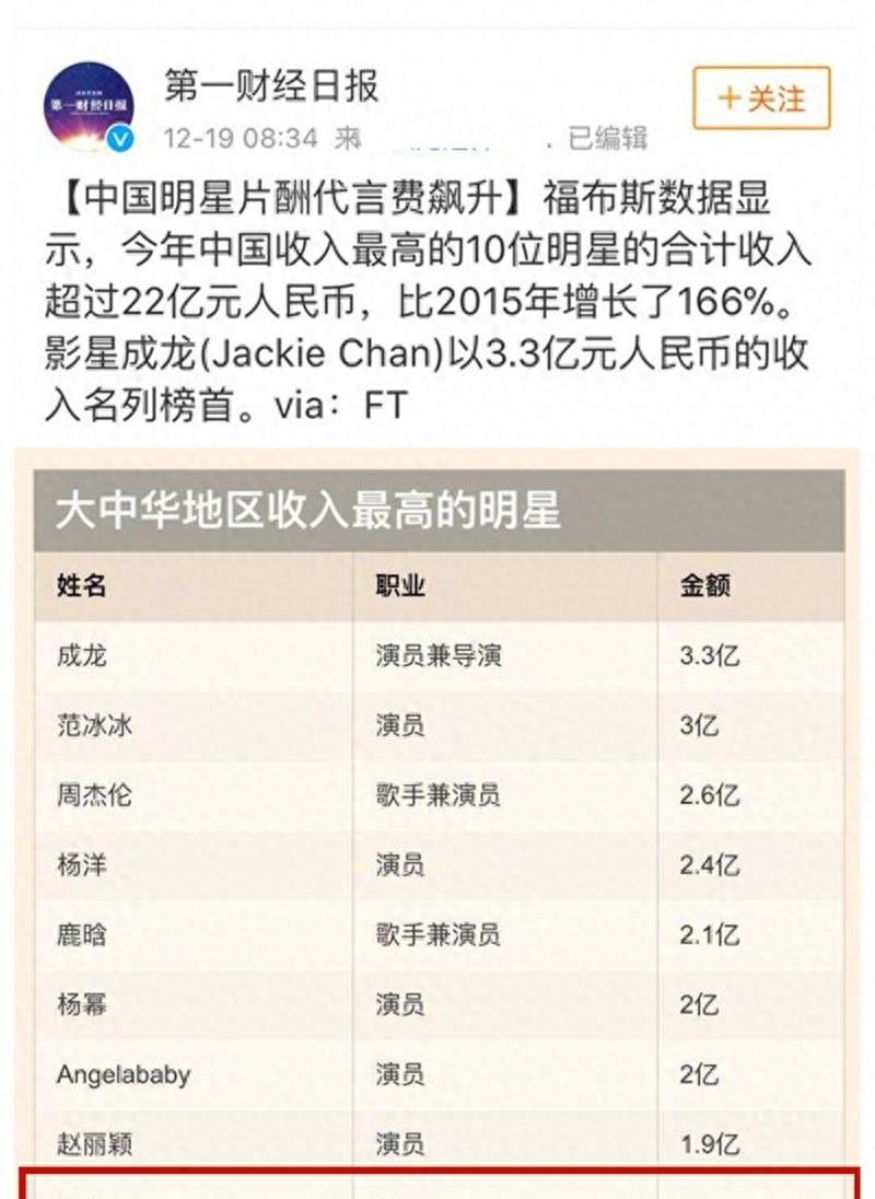 盛开的时候,刘涛的摄入量自然是惊人的。自2014年起,他就定期登上福布斯排行榜。首次上榜时,刘涛以2250万元的年收入排名第51位。到2016年,这个数字已上升至1.8亿。
