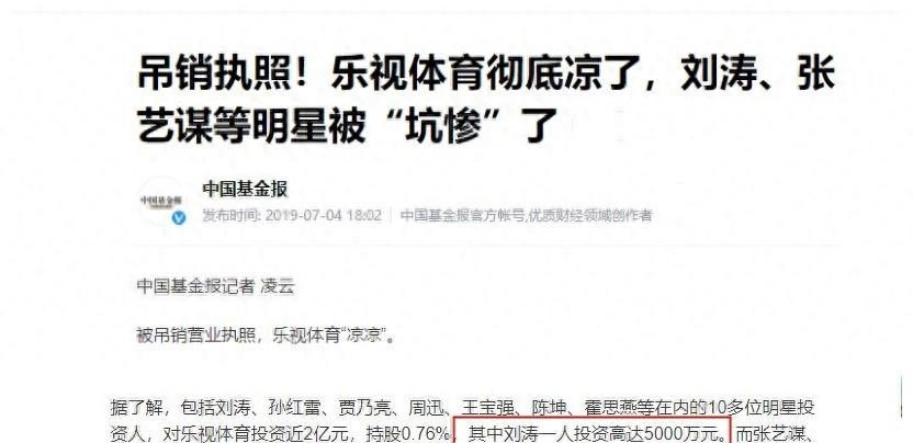 而她投资乐视网亏损5亿也证明了刘涛的身家。