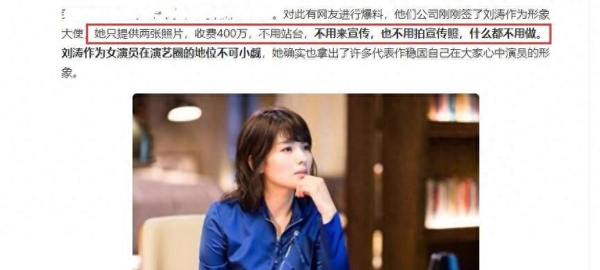 据网友爆料,刘涛曾接受公司400万的支持,但只提供了两张照片,无平台、无照片、无宣传。据此计算,“全职”演讲者的成本将增加一倍。
